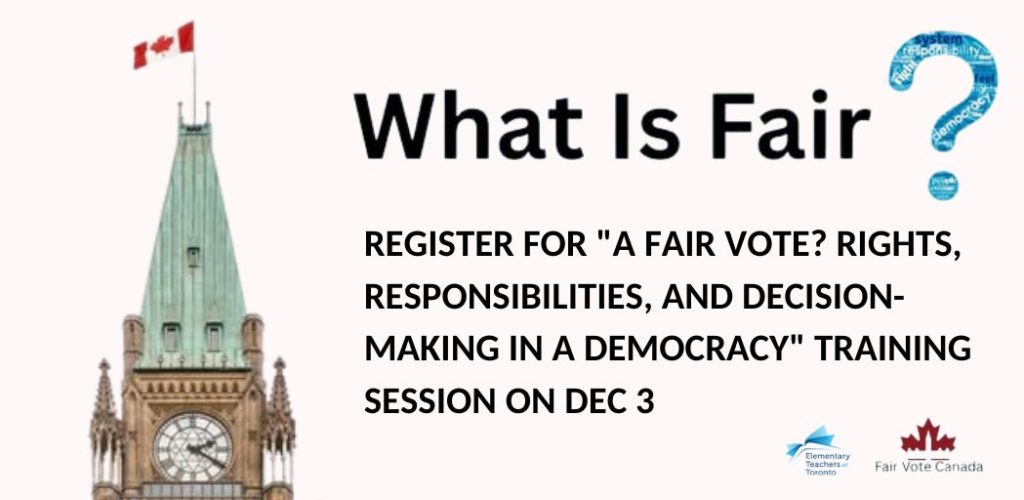A Fair Vote? Rights, Responsibilities, and Decision-Making in a Democracy is an exciting new resource for Grade 5 Social Studies teachers, which was developed by the Elementary Teachers of Toronto and Fair Vote Canada. This resource supports Strand B of the Social Studies curriculum on the Role of Government and Responsible Citizenship. The curriculum resource invites […]