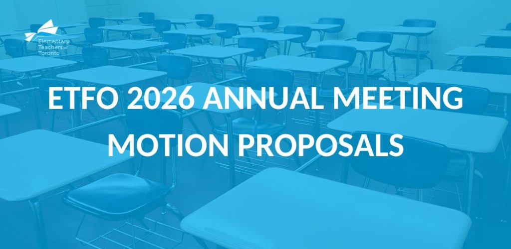 ETT members are invited to submit proposals for the upcoming ETFO 2026 Annual Meeting. Click here to review the ETFO Constitution and Bylaws. Members interested in submitting proposals should review the Guidelines for Submitting Resolutions before completing the form below. The deadline to submit proposals is January 26, 2026.